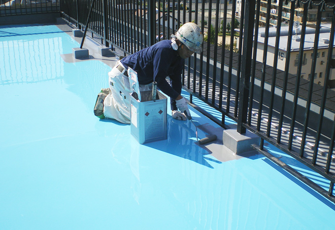 ゴムシート防水耐久性の高い加硫ゴムを原料としたシートを接着剤を用いて、下地に貼り付ける工法です。